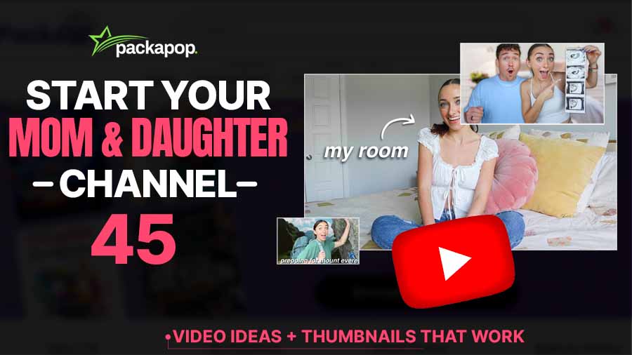 - Thumbnails = emotion + story. Viewers should instantly see who you are and what’s happening — matching outfits, hugs, happy tears, or a funny challenge twist. Use high-CTR designs from PackaPop’s YouTube thumbnail templates and adapt them for your mom-and-daughter channel.